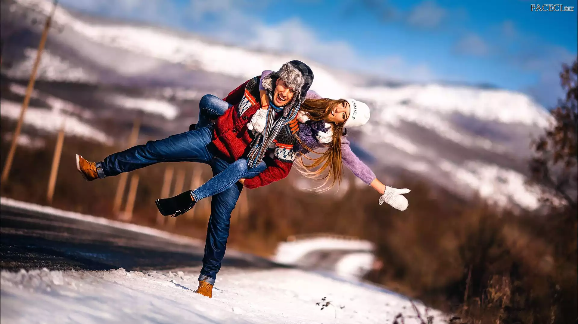Droga, Krajobraz, Radość, Dziewczyna, Góry, Chłopak - faceci.biz